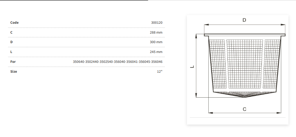 Arag Filter Basket suit 355mm Lids 300120 (254mm deep)