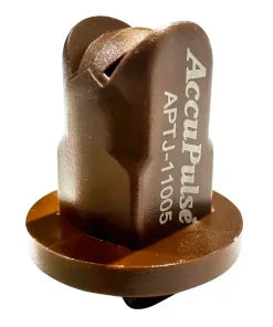 TeeJet APTJ-11005VP, Size 05 110 degree accupulse twin jet spray tip nozzle brown. Designed for PWM application. 0.5 GPM at 40PSI, 110 degree spray angle, 60 degree between leading 7 trailing spray patterns, 20-100 PSI range, Poly acetal construction, fits cap 114441-*-CELR.